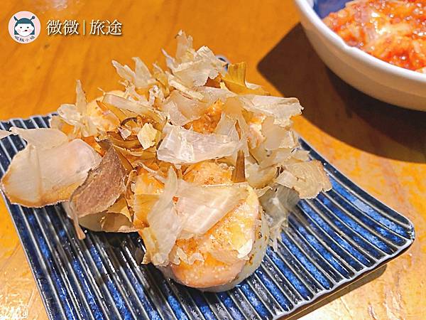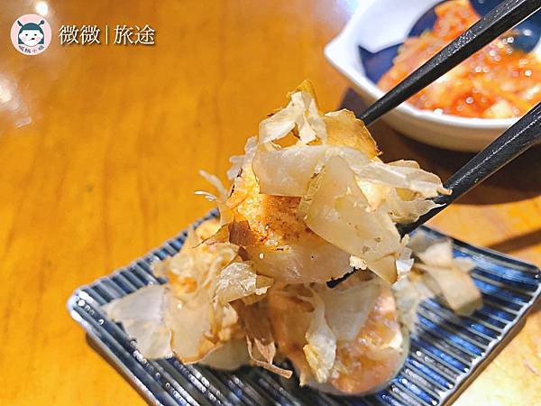 <明太子干貝燒>上頭的柴魚片還會動,一口吃下去很滿足哦