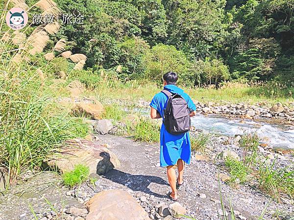 路人建議我們再繼續往上走,會有更多池子,只需要再多涉一小段溪水,但這段溪水的位置比較高,大概到腰部左右,我在這邊就直接穿泳裝了,不怕弄濕~