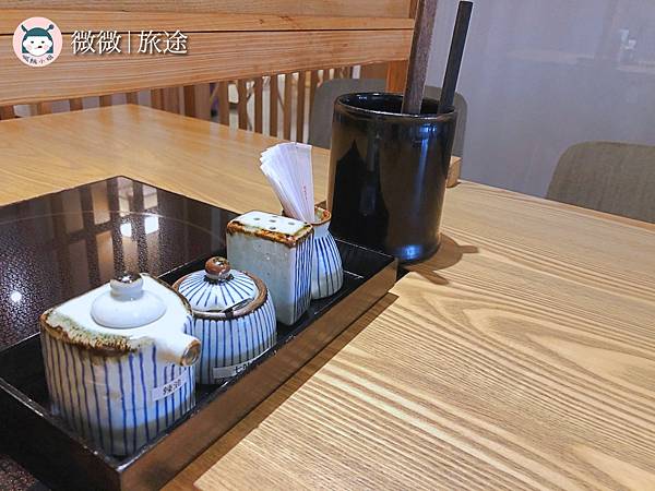 店家濃濃的日式裝潢,連店員都有穿很日式的衣服,有開放空間大窗戶的座位,下午光線灑進來,用餐氣氛很不錯哦!