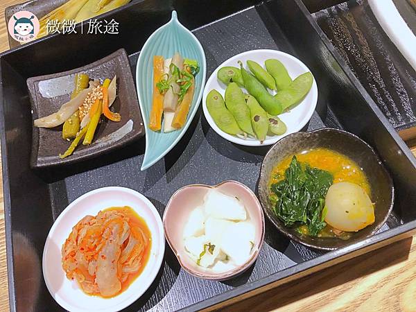店家小菜每一個都來一份,都是可以續加的,我自己其實覺得小菜的味道太特別了,自己只有蘿蔔跟泡菜跟毛豆比較喜歡,其他的醃製品部分自己個人本來就比較不太愛,但建議大家可以都嚐嚐看,很特別~