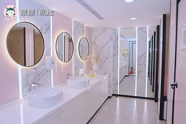 廁所位於櫃檯出去,也是超級漂亮,大理石配粉嫩嫩的顏色,少女心又要氾濫了![]()