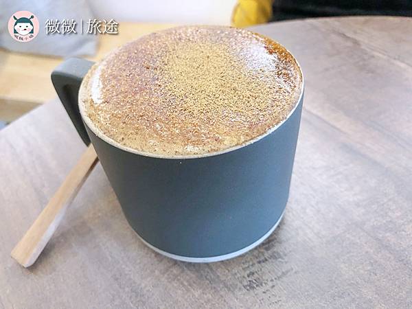 <愜意拿鐵>店家的特製咖啡,是帶有一點可可香氣的咖啡豆風味,風味還不錯哦,唯一覺得奶泡的部分可以再加強一點