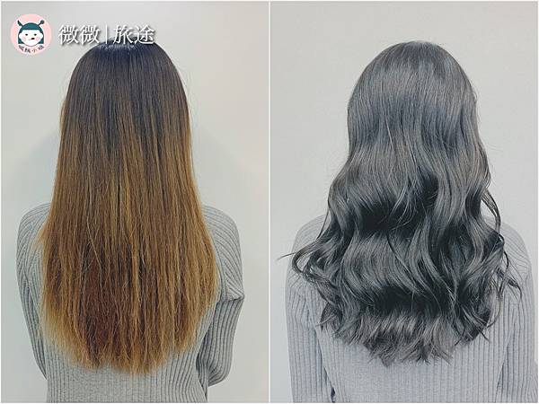 可以看到左右邊,不用我說大家應該都知道左邊是Before右邊是After了吧!真的大大感謝Doris幫我告別這個可怕的稻草黃毛,Doris在染髮的過程中有發現我的髮色卡黃色,還有適時幫我調整染膏顏色加入一點紫色,讓頭髮不要黃掉髒髒的,真的很細心![]()