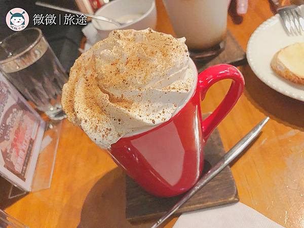 <熱黑糖維也納>算是我自己喜歡喝的名單之一,黑咖啡配上鮮奶油,上面還撒上黑糖粉,滿滿邪惡的搭配呀![]()