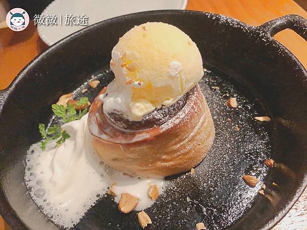 <肉桂捲佐冰淇淋>自己每次來這家店必點的就是肉桂捲,配上冰淇淋,真的幾口就扒完呀