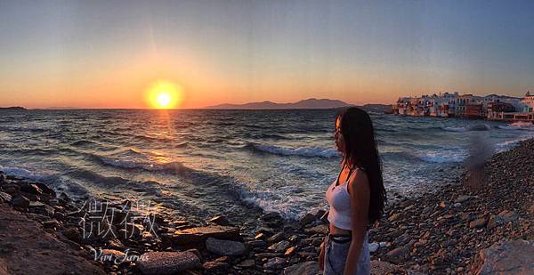 知道貪玩的自己學期結束沒有急著回家,還安排去了波羅的海三小國和希臘。明明隻身坐在米克諾斯的海岸邊,賞著號稱世界絕美夕陽,卻想著淡水那蛋黃橘河面。太陽下班躲回海下,大家為今日的夕陽演出鼓起掌聲,我發了個訊息,跟媽咪說:「我想家了!」順勢附上路人幫我捕捉與夕陽的合影。