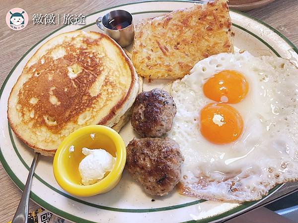 因為自己思思念念很想吃美式鬆餅,這家算是我心目中台北好吃的美式煎餅前幾名,女生來說分量可能會太大,男生吃剛好![]()