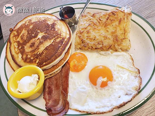 <原味煎餅早餐>結果和朋友兩個人都點了美式煎餅,兩個人吃完都超滿足的