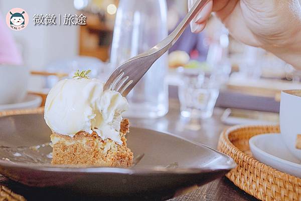 <肉桂蘋果蛋糕佐香草冰淇淋>蛋糕超嫌小塊,是紮實的那種水果蛋糕體,配上冰淇淋很搭哦!