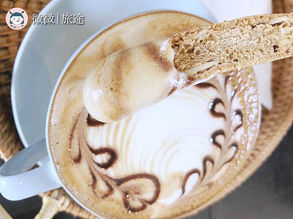 <卡布奇諾>咖啡都有附上餅乾麵包可以沾著吃,讓我有一種回到歐洲的錯覺,都會這樣沾著餅乾配著喝
