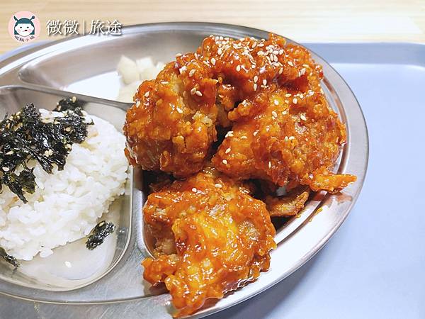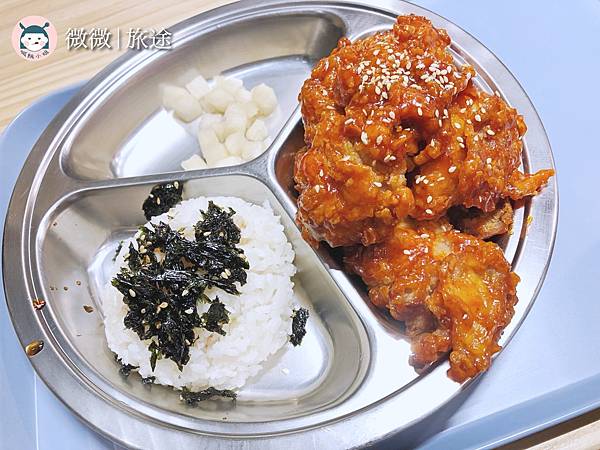 這個炸雞真的吃起來超級過癮,醬汁不會太辣,是有點香香酸辣酸辣的味道,肉很嫩,重點是無骨最符合我這種懶人了啦~重點才來配醃製的白蘿蔔,可以解膩,但個人比較喜歡大塊吃的到蘿蔔清脆的那種口感,覺得這個蘿蔔偏小塊吃不到清脆的口感有點可惜