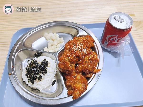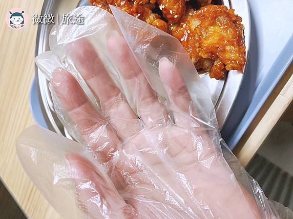 <單人套餐-辛辣洋釀>單人套餐就是多了飲料跟韓式手控飯糰,吃還有貼心附上塑膠手套,不用怕雙手弄得髒兮兮地吃東西,韓式飯糰我自己在韓國吃也是這樣,要自己捏成一球,裡頭有麻油和海苔