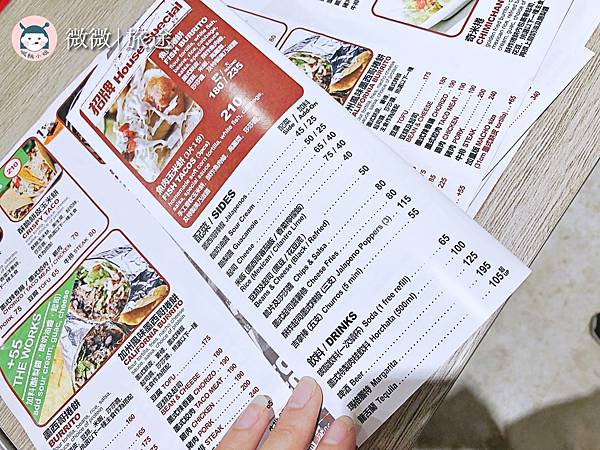 完整菜單我放在最後,墨西哥捲餅的部分,裡頭的配料可以自己選哦!
