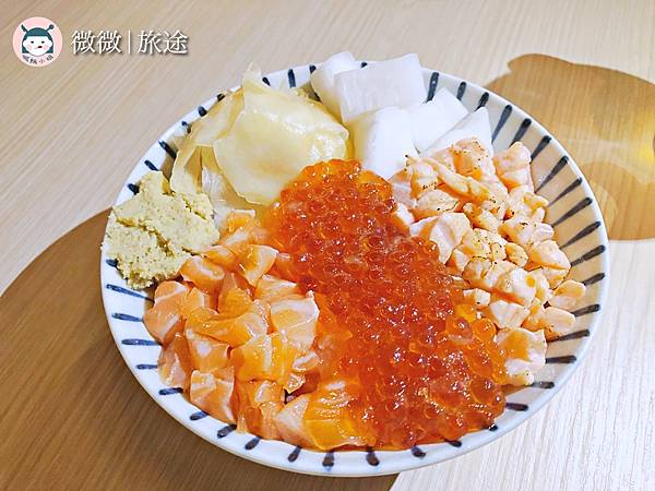 <三色鮭魚親子丼飯>果然是丼飯專賣店,不會讓你失望的,鮭魚很新鮮,下面的飯已經有加淋上醬油,拌著吃跟我一樣鮭魚控不要錯過