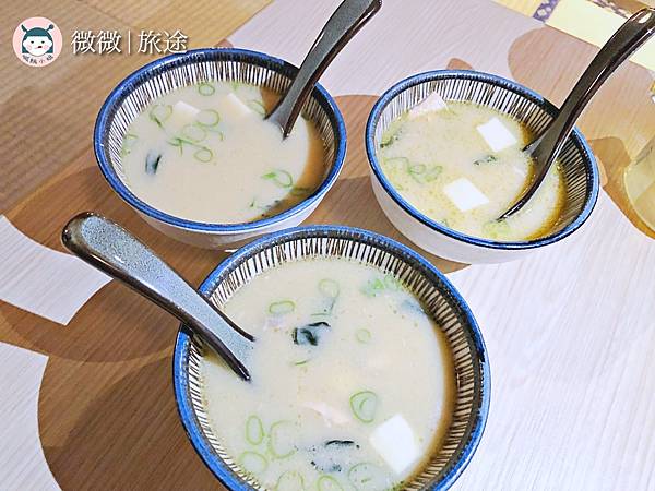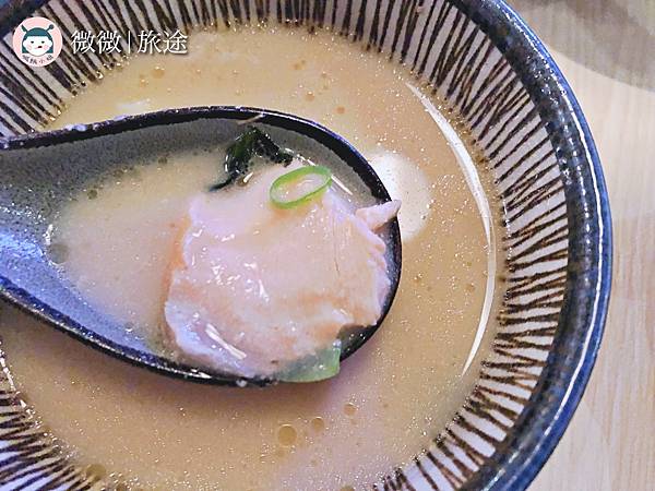 <附餐-味噌湯>早鳥時段每一個主餐都有附湯,重點是裡頭還有鮭魚魚片,不是那種很多日本料理都用剩下帶刺的魚部位去煮湯,是這種一大片無刺的鮭魚,很有誠意