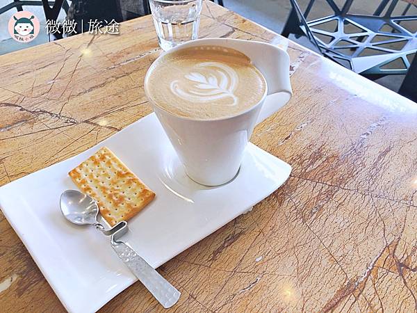<拿鐵咖啡>熱拿鐵還有附上蘇打餅乾,雖然第一次喝咖啡看到是搭配蘇打餅乾,有一點點違和不太會想沾著咖啡吃,但咖啡的味道還不錯,是比較喝的到帶點苦味的那種