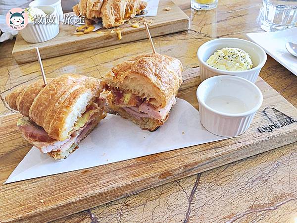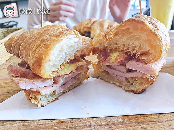 <芥末起司豬排可頌>豬排給的還蠻厚實的,配上清爽的芥末醬起司,當早午餐很適合哦