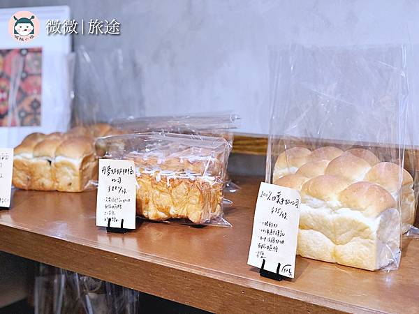 一進門右手邊是吐司麵包區,可以看到每一個麵包小卡上,都有精心寫上麵包的食材。