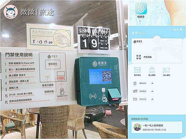 一開始會幫你註冊會員,手機同時要下載APP,進門使用APP內的門禁條碼就可以,個人覺得超級方便,裡頭有預約課程的日期或要購買課程,都可以直接操作,像我之前有改約時間,也都會在發mail通知你,對於我們這種忙碌又斜槓的青年們,大家都能成為時間管理大師的