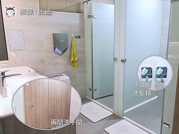 淋浴間裡頭還有沐浴乳和洗髮精,個人其實超級有廁所潔癖,這邊都整理得很舒適乾淨,讓人不會有不自在的感覺哦![]()