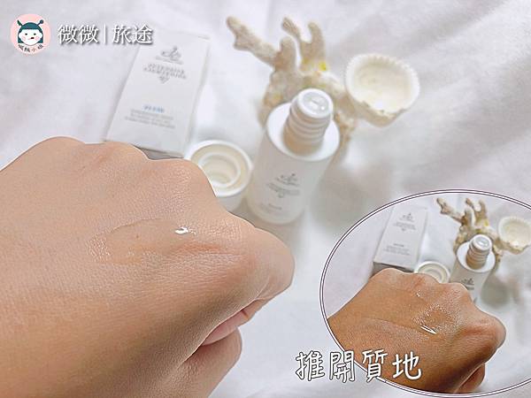實際在手背先試用看看,質地是比較濃稠的水狀,可以看到不會特別晃動,輕輕一推抹開,很快就吸收了。