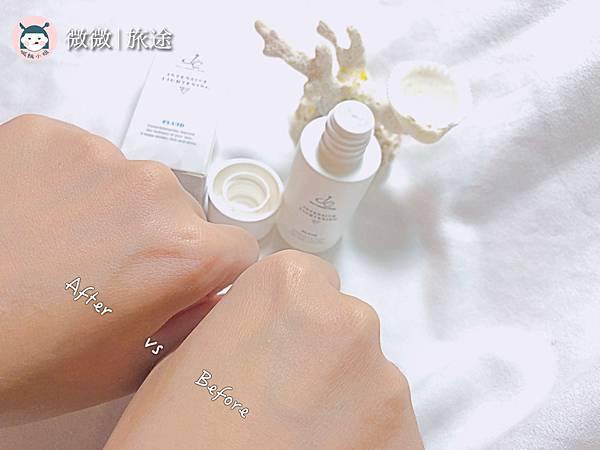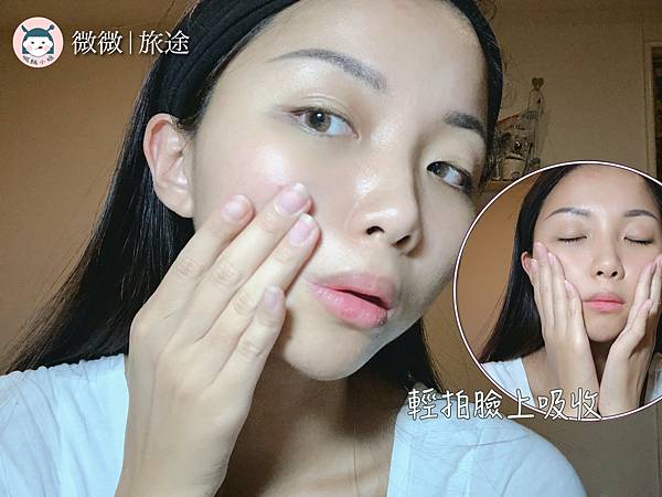 手背測試ok,就來臉上使用,輕輕倒在掌心塗抹,最後輕拍吸收。有一種Q彈的感覺,裡頭的沒黑素、甘草萃取液、玻尿酸鈉,也能改善肌膚不均,完全就是我這種愛曬太陽的女生需要的~