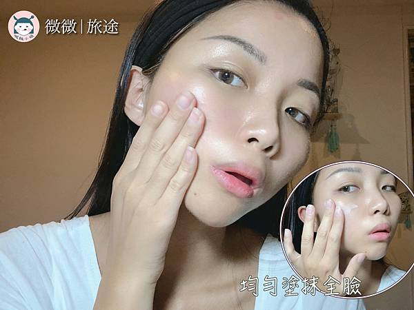 再來上臉使用看看,大家除了臉均勻塗抹外,也可以帶脖子的地方,別忘記脖子也很重要哦。