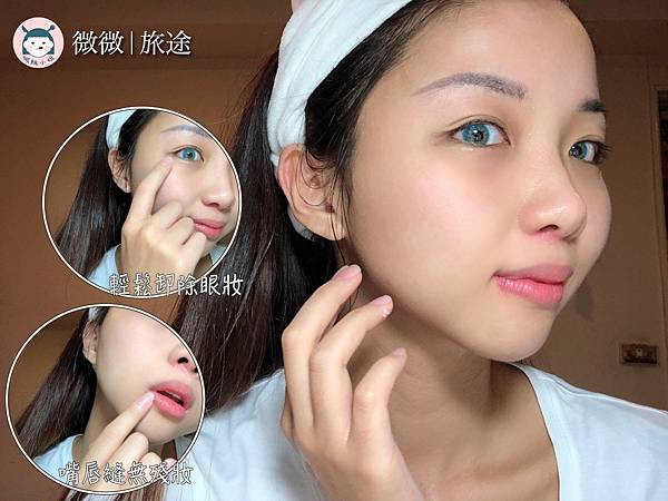來檢視一下,兩個大家最在意的眼唇部分,眼睛周圍和嘴唇縫的部分完全沒有殘妝,AMAZING!!!超級多驚嘆號的驚嘆中!本來還想說是不是還是得使用眼唇卸妝液,沒想到這款完全可以對付我的彩妝,卸完妝後,臉上的肌膚沒有緊繃的感覺,可以給一個大心