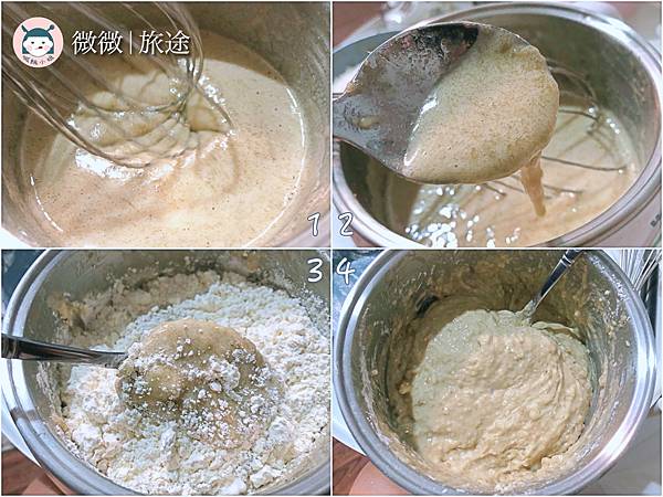 如果家裡有過篩的器材,可以先將麵粉過篩,才不會麵粉結塊吃到,我自己是沒有,但麵粉結塊的情形不嚴重。