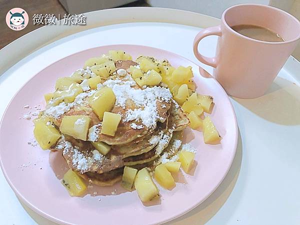 再配上一杯咖啡,就是我今天的甜點了啊!大家可以試試看,我自己作完超有成就感的,用家裡現有的東西,就可以做出來健康又美味的鬆餅囉~