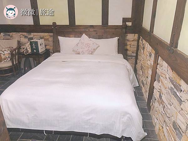 房間是一張大床,一進民宿就能聞到濃濃的木頭香氣。