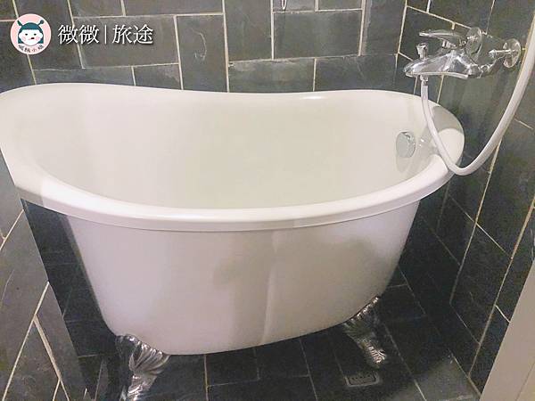 浴室比較可惜是沒有乾濕分離,但居然有這種有腳的浴缸,絕對超級歐風的啦,雖然浴缸不大,但能在山裡晚上泡個熱水澡也是相當舒服~![]()