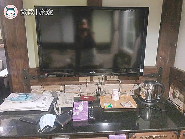 電視還算大,有第四台可以觀看,上方的茶水台。
