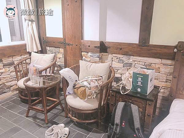 有兩張椅子,朋友那間的雙人房是沙發椅,看來每間房的格局都稍有不同哦。