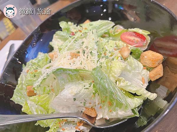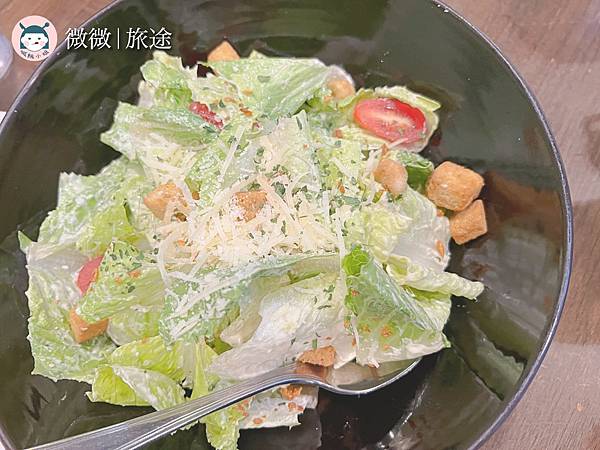 <凱薩沙拉>凱薩給的分量很足,上面還有香香的起司,醬料很均勻,不會像有些沙拉都只一大坨在上面