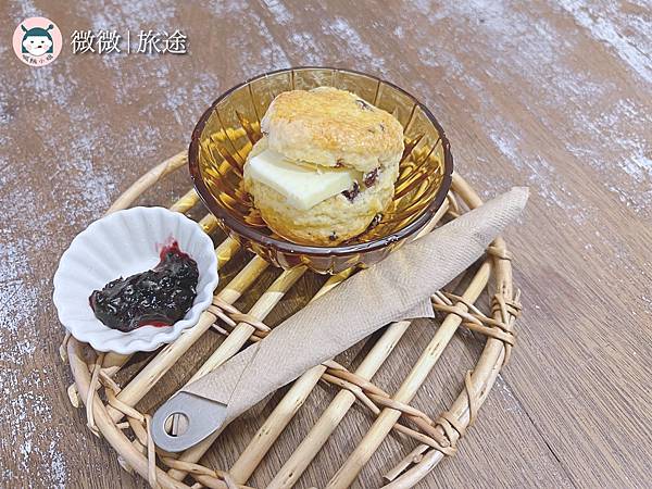 <英式司康>司康有附上果醬跟奶油,吃起來不會乾乾的,還不錯囉~