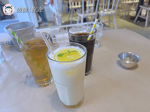 <果汁/水蜜桃可爾必思/汽水>果汁跟汽水是可以免費續杯的哦!