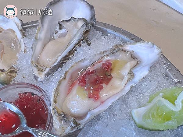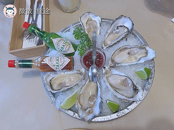 <現開活生蠔 半打>超級快的生蠔就上桌啦~有附上很多種醬可以自己搭配的組合,但經過大家一輪比後,覺得還是單吃或加檸檬比較搭,其他醬有一點搶過食材的味道了,唯一可惜的地方是,有一顆明顯沒那麼飽滿小小失望