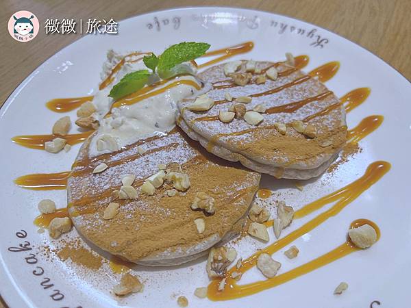 <紅茶肉桂焦糖鬆餅>鬆餅配上肉桂粉,鬆餅皮帶點淡淡紅茶香,配上肉桂粉和焦糖和鮮奶油,很搭!鮮奶油不是那種可怕油膩的那種,吃起來帶奶味的香,又不會油膩假假的感覺!味道不會太甜,怕甜的人可以試試。