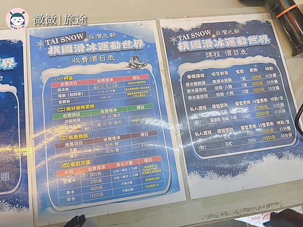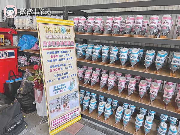 櫃台都有明確的價目表,如果第一次滑冰也有課程可以上,場地入場兩個小時假日和平日的費用不一樣。手套是強制要帶的哦,跟台北小巨蛋一樣,也可以現場購買50元,我們都有帶到,就不用再花五十元買可能只用一次的手套了~這裡只要填寫同意書表單,就可以不用租借護具哦,我個人覺得很不錯,畢竟小巨蛋是強制得租借護具的!
