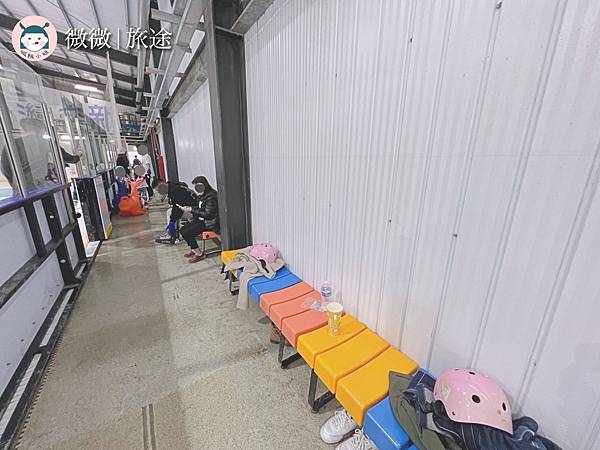入內後沿著滑冰場的兩側都有椅子休息區。