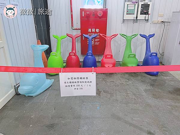如果第一次滑冰的人,也有輔助學習的小鯨魚或是企鵝可以租借,是一百元,押金再付一百。