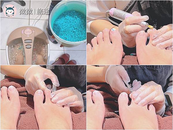 先泡熱水足浴,然後卸甲和修剪指甲甲型和附近的甘皮!