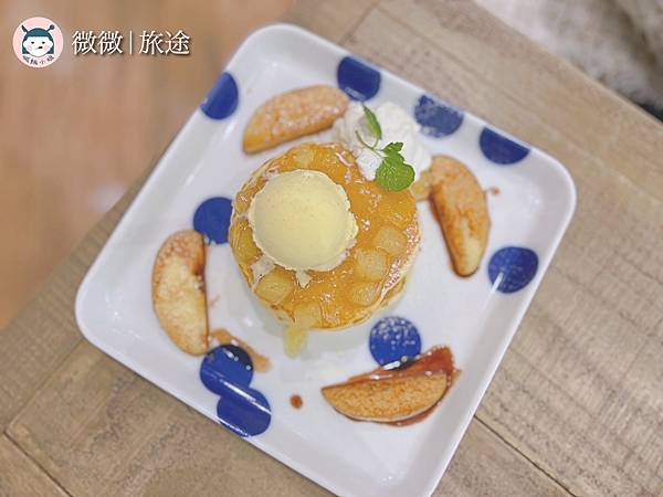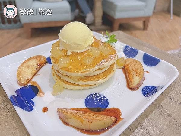 <焦糖肉桂蘋果鬆餅>這家除了招牌很厚的鬆餅外,還有一般的日式鬆餅,麵香不會過甜又鬆,自己蠻喜歡的