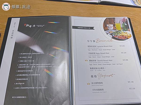 簡單參觀完後,就要來用早午餐囉!完整的菜單放在最後面,店家還有跟新月梧桐結合,有很多不錯的酒,可以參考囉!