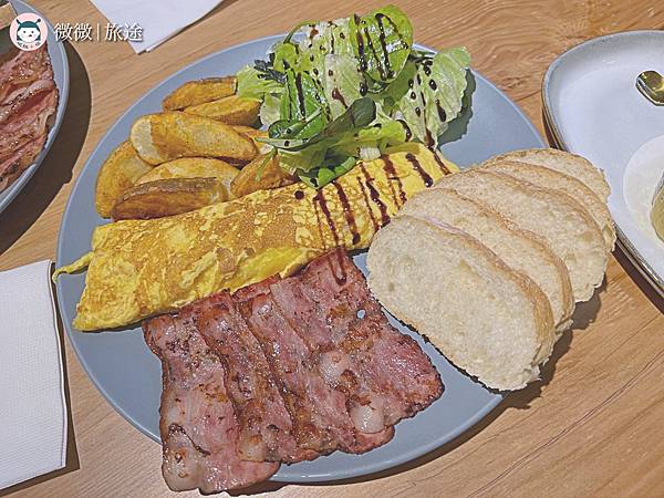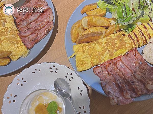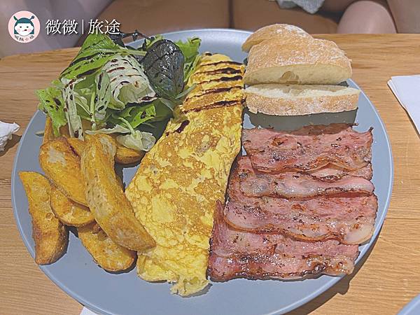 <滿福早餐>早午餐的份量還蠻大的,有簡單的沙拉跟薯條和蛋,還會附上優格,調味上比較偏清淡哦!