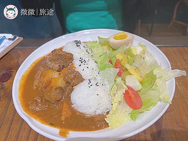 <紅酒燉牛肉飯>有附上生菜、糖心蛋,牛肉吃起來蠻嫩的,口味比較中式的感覺,辛香料調味的蠻下飯的