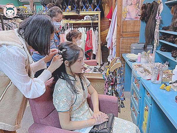 個人覺得這家超級會弄頭髮的,手很巧,我們租借旗袍加綁頭髮,總共是600元哦!沒有時間限制,可以穿到五點半來還~