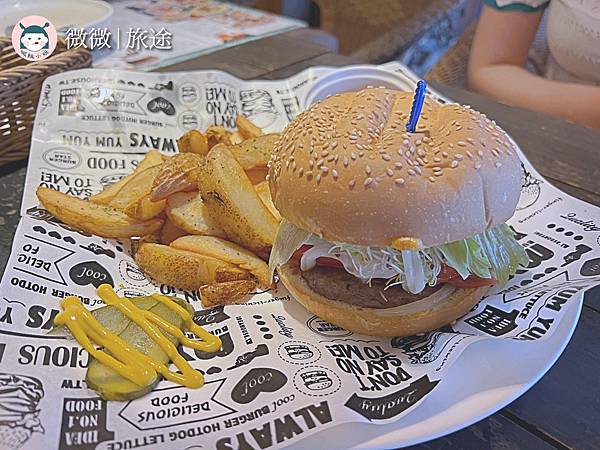<培根牛肉起司漢堡>漢堡有一點可惜,漢堡麵包沒有烤得酥脆,反而很軟碰到肉汁就麵包體變得有點爛的感覺,薯條還不錯吃囉!
