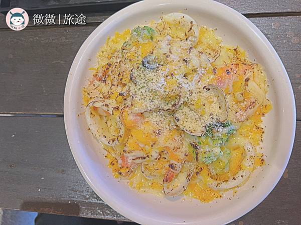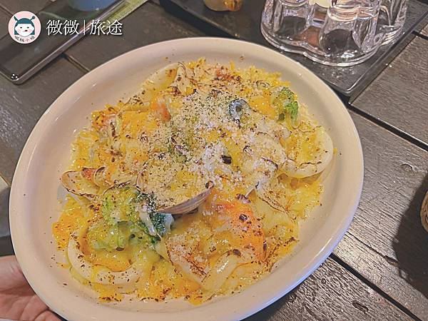 <火焰焗烤起士海鮮米飯>看到滿滿的起司就是開心呀~海鮮的料蠻多的,吃起來很夠味哦!